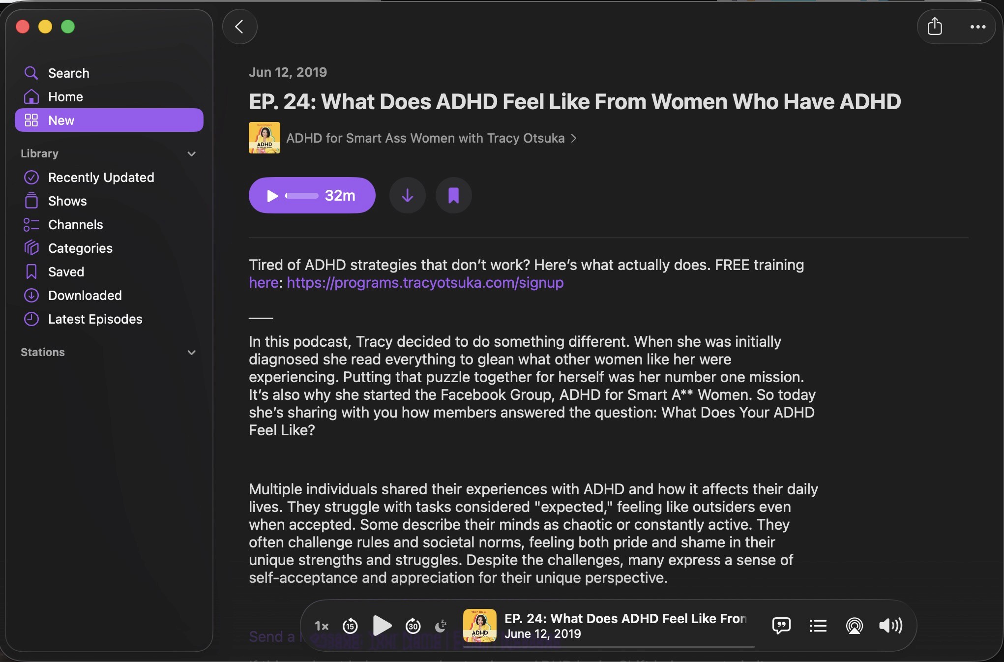 This is a podcast about high functioning women who struggle in very different ways with their ADHD. I remember listening to this and being both shocked and extremely comforted that successful people shared some of my absurd-feeling struggles.